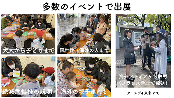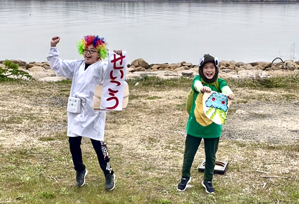 海や川の清掃活動や珊瑚再生活動に参加しています。海や川には人間が捨てたゴミがたくさん流れています。ゴミで海の生き物達が苦しんでいる事を知らない人も多く、清掃活動のイベントで、いろんな世代の方に興味関心をもっていただけるように『2 人で作ったユーモアーたっぷりの劇』をしたり、『ゴミをステキなアクセサリーに甦らせるワークショップ』に取り組んだりしています。ゴミを増やさない事や再利用する事、川や海に流れてしまったゴミの回収活動の大切さを広め、大阪の清掃活動を盛り上げています。