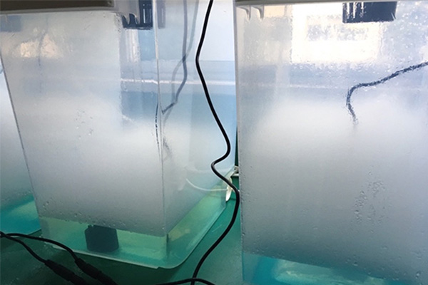 水の惑星と呼ばれる地球。しかし気候変動や人口増加による食糧増産などにより、水不足が世界的な深刻な問題となりつつある。そこで私たちは、密閉容器と超音波ミスト発生装置を用いて貴重な水を有効利用する節水型ミスト栽培システムを開発した。このシステムの特徴は養液をミスト状にして間欠的に供給することである。給水頻度を最適化することで、従来の水耕栽培と比較して、レタスの収量を損なうことなく、約 70%の節水、約 65%の CO2 排出量削減、さらに約 84%の肥料節減が可能であることを確認した。