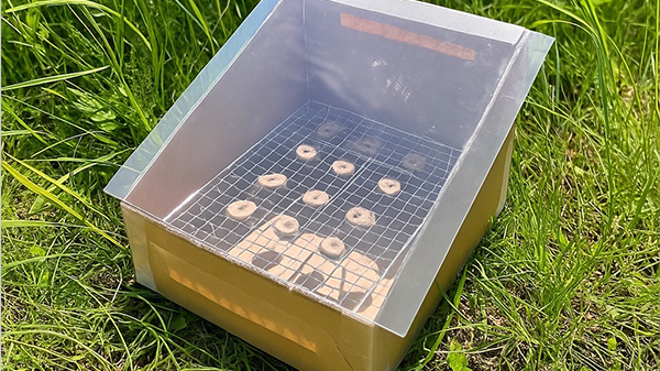 本校は実習で規格外の農産物を使った加工品を製造しているが、近年の異常気象により処理しきれないほどの規格外品が生じている。また日本に目を向けると、国内で1年間に発生する食品廃棄物は522万tであり、そのうちの半数以上が野菜類や果実類といった生鮮食品であることが分かっている。科目「食品製造」の中で食品の保存方法として乾燥が有効であることを学んだ私たちは、野菜や果実の規格外品を太陽光で効率よく乾燥させるための「段ボール製ソーラーフードドライヤー」を開発し、その装置を普及することで食品ロスを削減する活動を行うこととした。