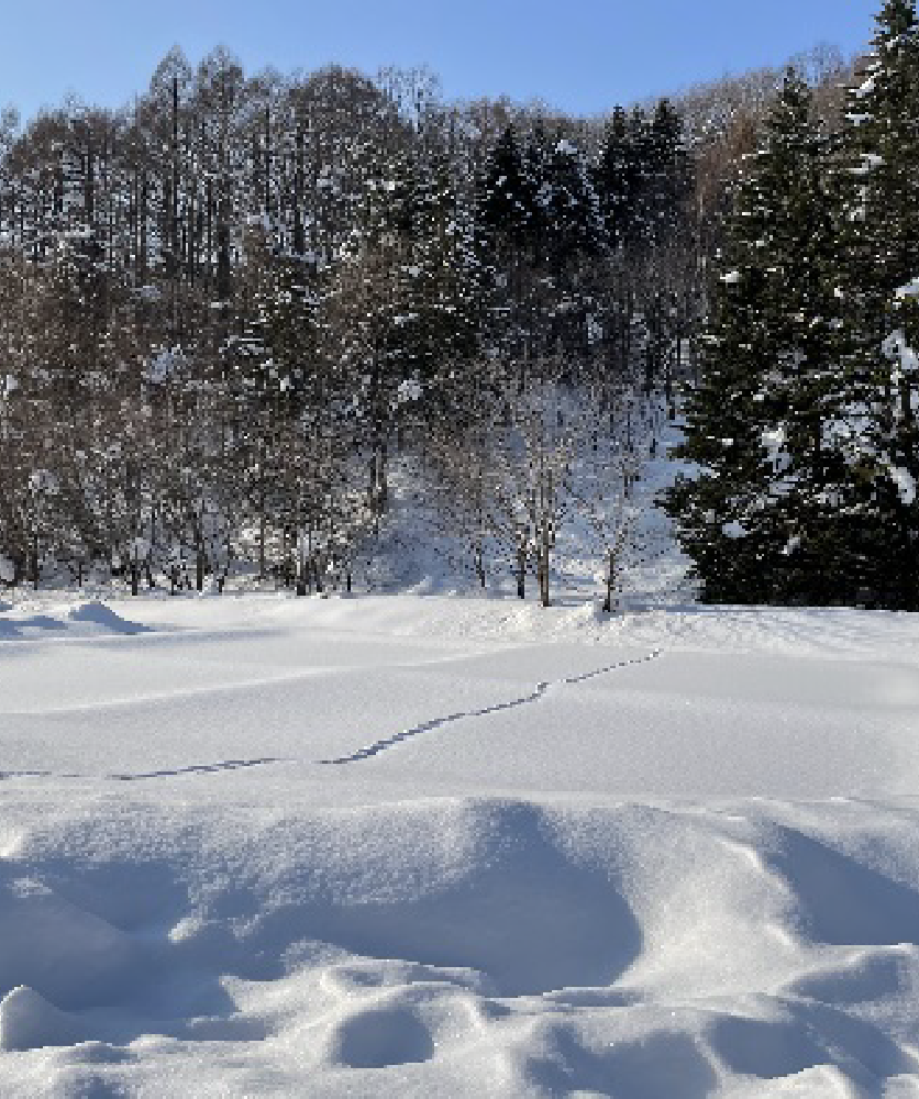 お話いただいた後、実際にハサンベツに向かいました。例年よりも積雪量の多い2月で、雪に覆われていたため実際の里山の全容を見ることはできませんでしたが、500円募金で集まったお金で建てた建物や「田」の形の田んぼを見ることができました。地元の人の納得や協力があってこその活動の素晴らしさを実感できました